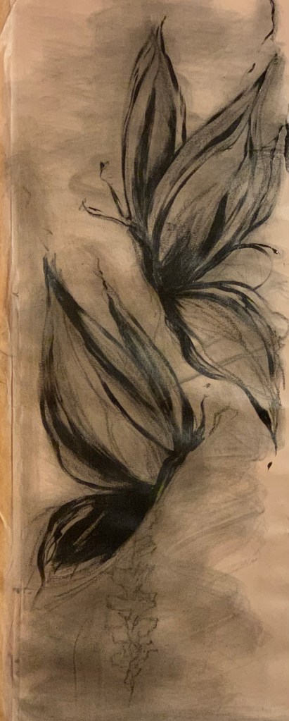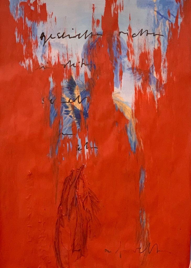 100x70cm, acryl auf papier, „durst hab ich. und lust. wer kann’s wasser mir reichen. den geist benetzten. … die zigarette danach und ein gedicht dazu.“