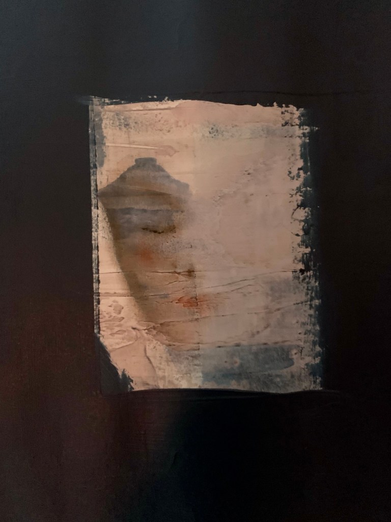 44x132cm, acryl und pastellkreide auf papier,_Heimat gefunden_94x129cm, acryl auf foto/papier, „ein hinzutun … und aus wunde wird wunder“ _Heimat gefunden_